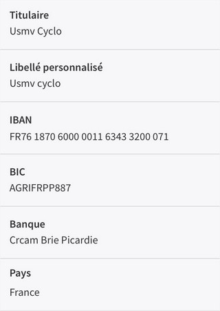 - Adhésion CLUB USMV CYCLOTOURISME : 30 €