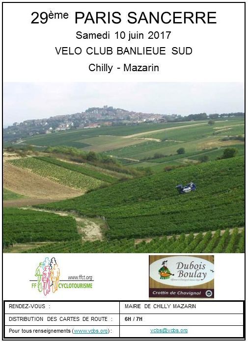 Pour cette édition, un parcours innovant vous conduira à Chavignol, jusqu'à la fromagerie Dubois-Boulay où l'on vous attend pour la traditionnelle degustation de crottin et de Sancerre. Vous aurez alors parcouru 213 Km et 1825 m de dénivelé.