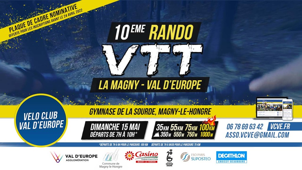 Plusieurs parcours VTT avec des départs entre 7h et 10h. Nous tâchons de créer des parcours inédits à partir de 35 km et 350 m de dénivelés, et cette année nous inaugurons un parcours de plus de 100 km et 1000 D+.