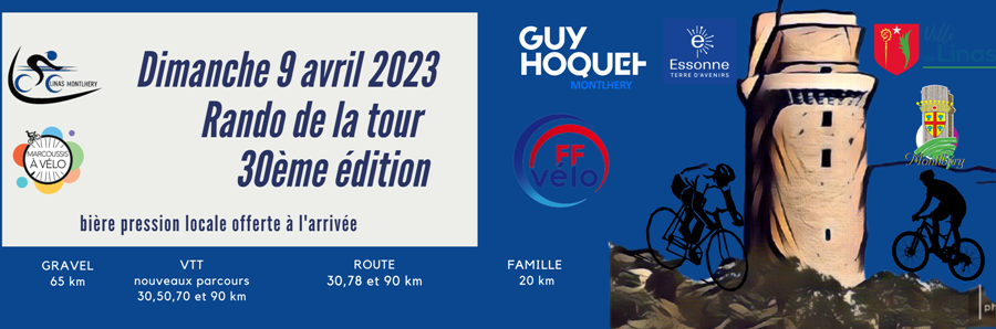 - Sur route des classiques du CCLM qui vous feront sillonner les petites routes du sud de l’Essonne, en VTT des circuits entièrement nouveaux, en Gravel (idem 2022) et un spécial famille sur les bords de l’Orge, avec les accompagnateurs de l’association Marcoussis à Vélo. Les mineurs sont acceptés à partir de 11 ans et accompagnés d’un parent.